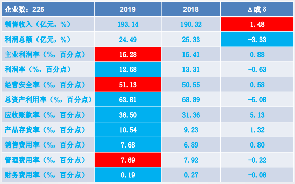 11个经济运行指标中:销售收入、利润总额、主业利润率、经营安全率、应收账款率、产品存货率和管理费用率好于上年同期;其余4个指标差于上年同期。