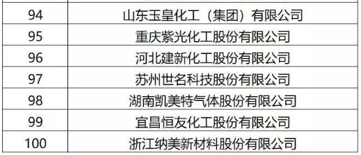2019年11月28日,在由全国精细化工原料及中间体行业协作组、中国化工情报信息协会在广西北海联合主办,中国化工信息中心承办,北海市铁山港区人民政府、北海市铁山港(临海)工业区管理委员会协办的“第十九届国际精细化工原料及中间体(铁山港)峰会暨2019中国精细化工百强发布会”上,公布了“2019中国精细化工百强”榜单。