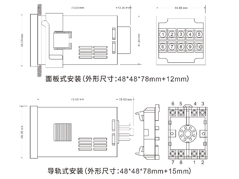 安装方式:面板开孔式或35mm导轨式